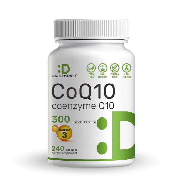 CoQ10 300mg, 240 Capsules – with Omega 3 Fatty Acid 100mg