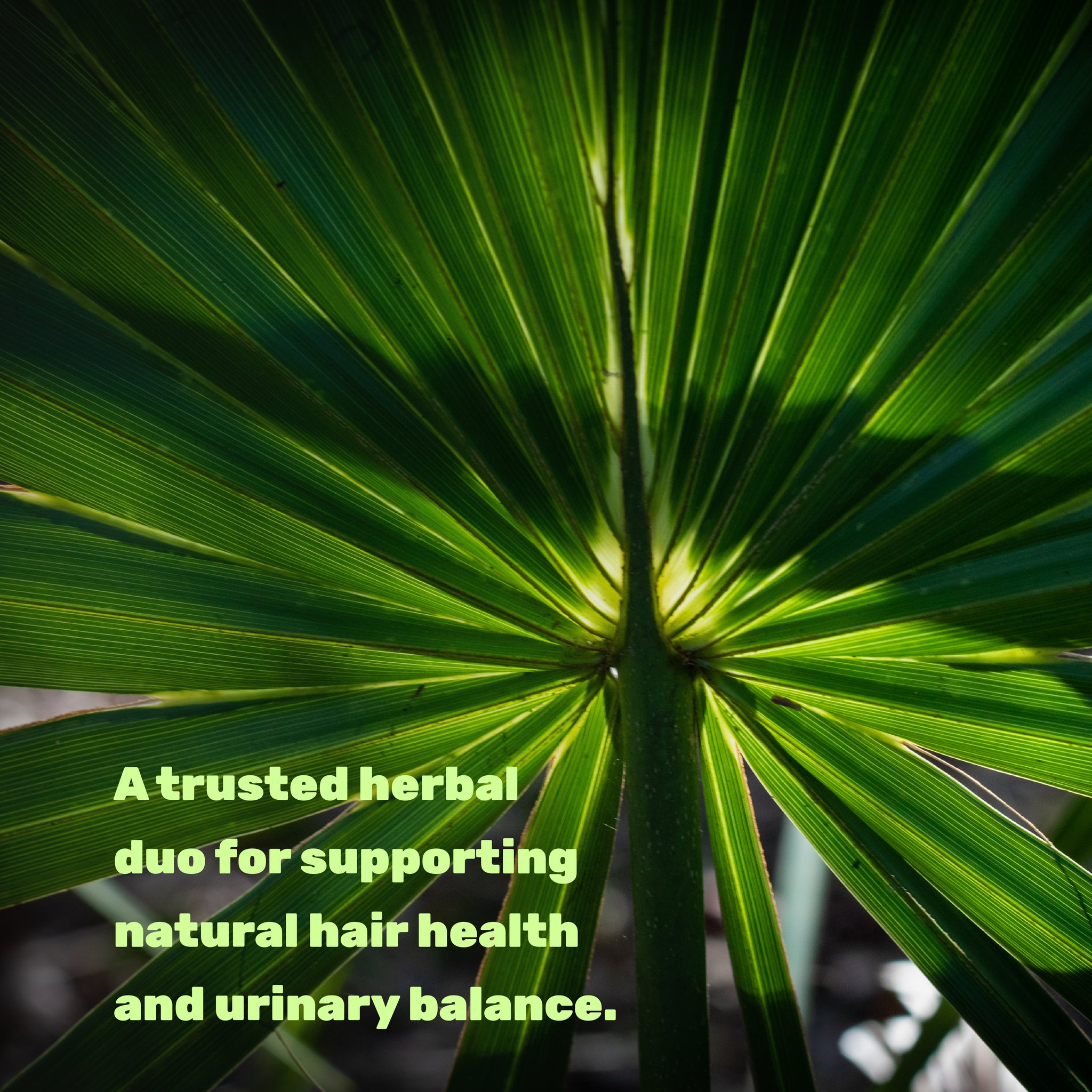 Benefits & Use – Saw palmetto combined with pumpkin seed provides essential nutrients like phytosterols to promote dual action support to combat hair loss, balance DHT levels, optimize prostate health, and control frequent urination in both men and women.