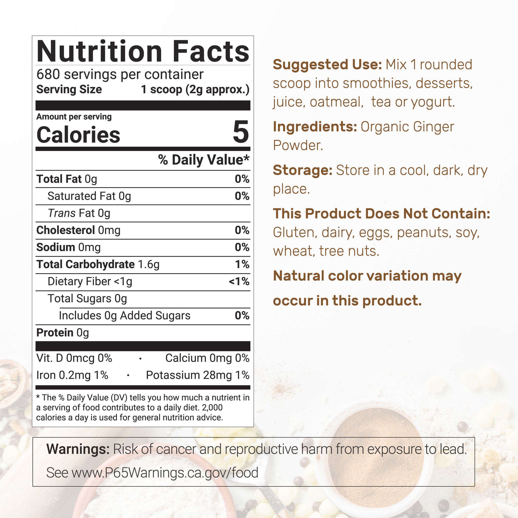 Benefits & Use – Raw and organic ginger powder that seamlessly blends into culinary or baking recipes, as well as a superfood herb loaded with a nutrient dense profile for supporting overall digestive function.